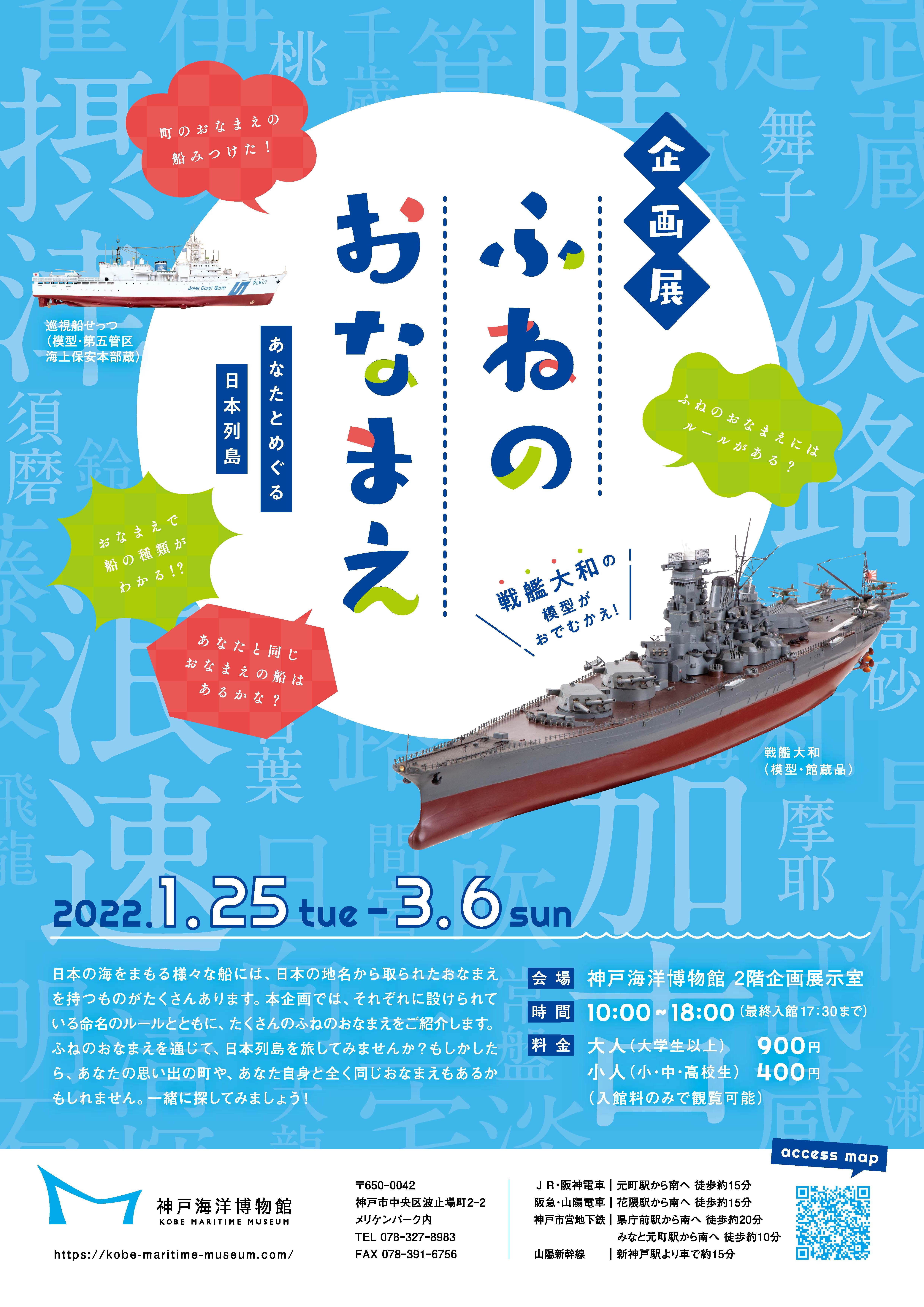 神戸海洋博物館では、2022年1月25日(火)~3月6日(日)まで、「ふねのおなまえ あなたとめぐる日本列島」を開催いたします。